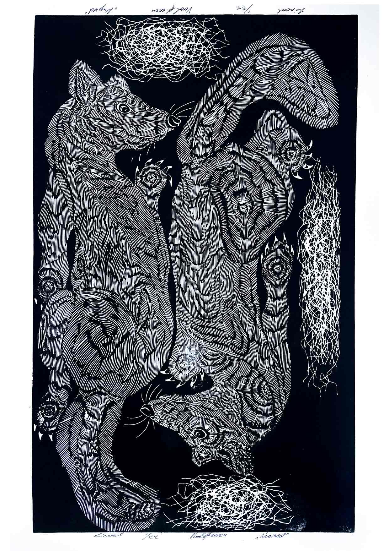 Due to the nature of printmaking, each print is one of a kind so it may look a little bit different than others. There can be some errors, for example some ink stains or small unprinted areas.